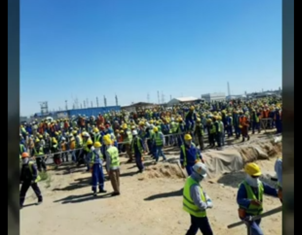 Суреттегі көріністі намысқа тиеді деп есептеген жұмысшылар ереуілге шығып, араб қызметкерлерін соққының астына алды.