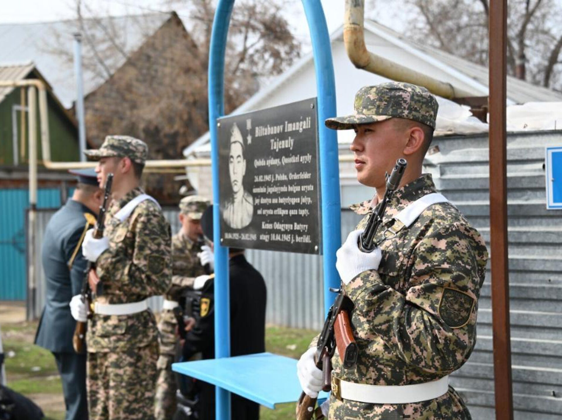 АСТАНА, 13 сәуір – Sputnik. Облыс орталығындағы Кеңес Одағының Батыры Иманғали Білтабанов көшесіндегі ескерткіш тақтаға гүл шоқтарын қою рәсімі өтті.