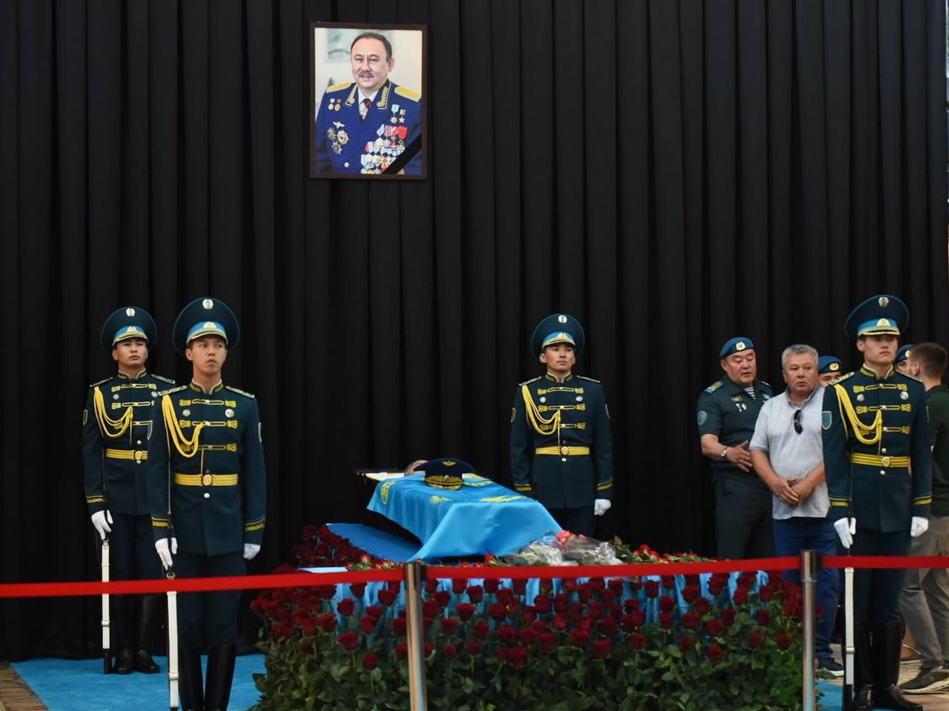 Ғарышкерді соңғы сапарға шығарып салуға Айдын Айымбетов, Тоқтар Әубәкіров, Бақытжан Ертай, қорғаныс министрлігінің өкілдері, қоғам қайраткерлері мен депутаттар, басқа да лауазымды өкілдер келді. Қоштасуға келген халықтың қарасы көп.