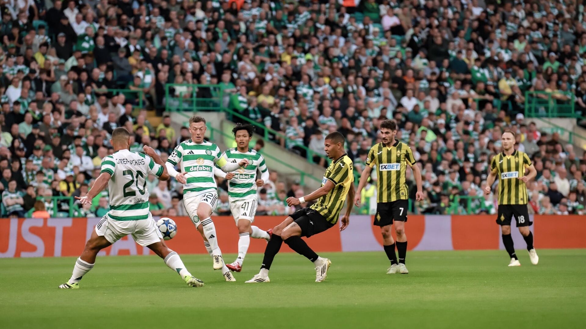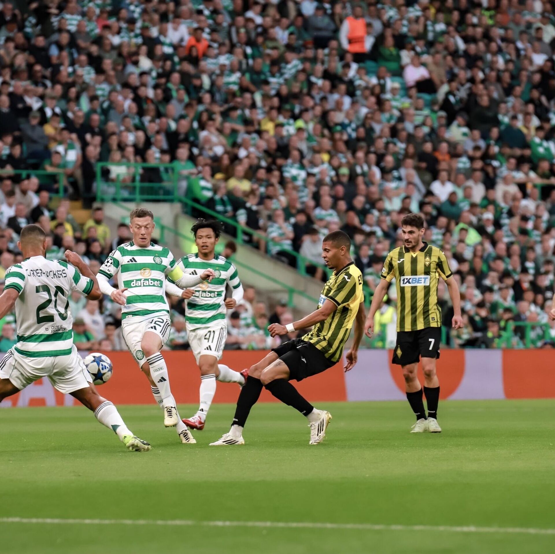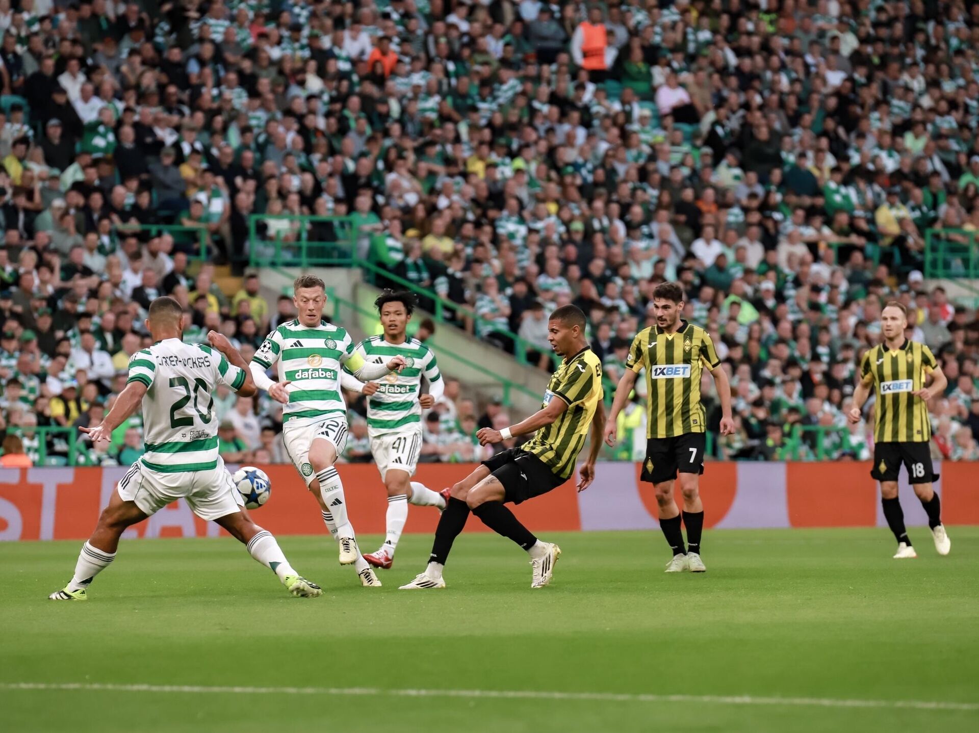Глазгода өткен кездесу 0:0 есебімен аяқталды. Бірінші таймда алматылықтар гол соғып та үлгерді, бірақ Александр Мартынович соққан гол офсайдқа байланысты есептелмей қалды. Айта кету керек, бірінші таймның соңында екі команда да допты нысанаға дәл жеткізе мады. Бұл ретте "Қайрат" қақпаға қарай бес, ал "Селтик" екі соққы жасады.