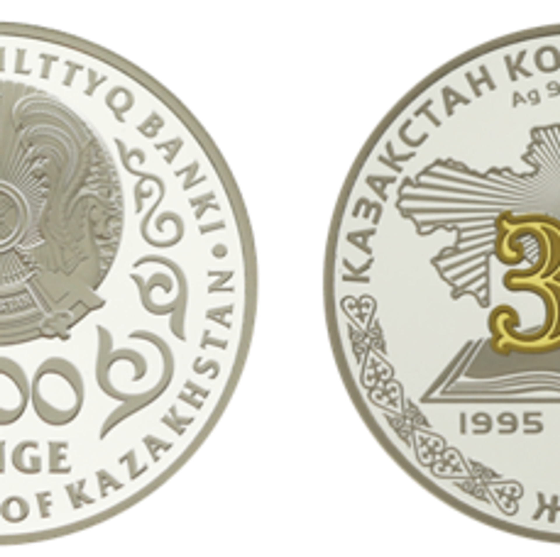 Бұл - "Есте қалатын оқиғалар мен біртуар адамдар" топтамасындағы "Қазақстан Конституциясына 30 жыл" деген жазуы бар монеталар. Монеталар алтын жалатылған 925 сынамды күмістен жасалған, деп хабарлады Ұлттық банк.