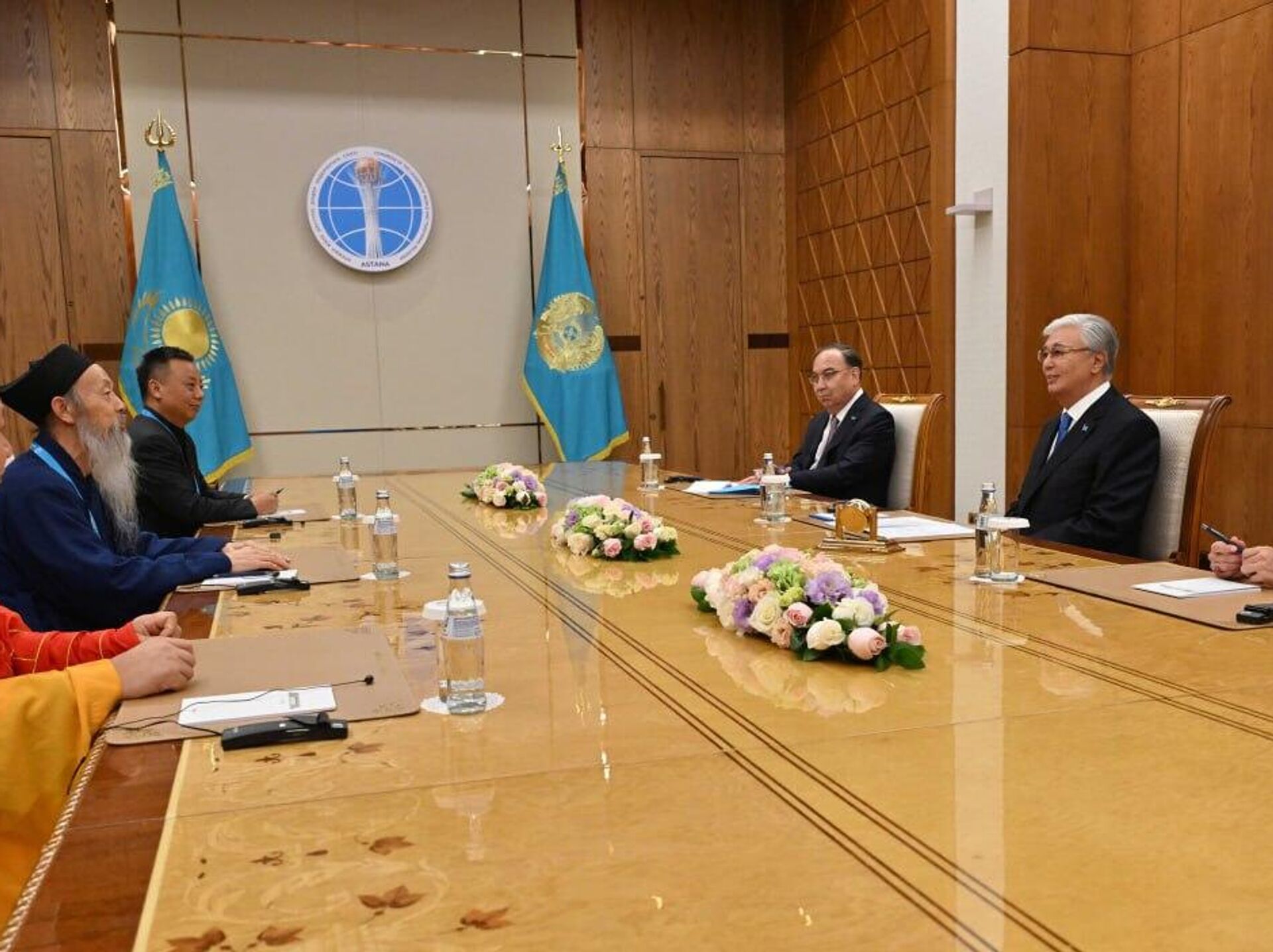 Қасым-Жомарт Тоқаев Дүниежүзілік даошылар федерациясының төрағасы Ли Гуанфу, Қытай буддашылар қауымдастығы төрағасының орынбасары Цзин Бо және ҚХР Дін істері жөніндегі бас басқармасының әкімшілік департаменті бастығының орынбасары Сунь Вэй бастаған делегацияны қабылдады.