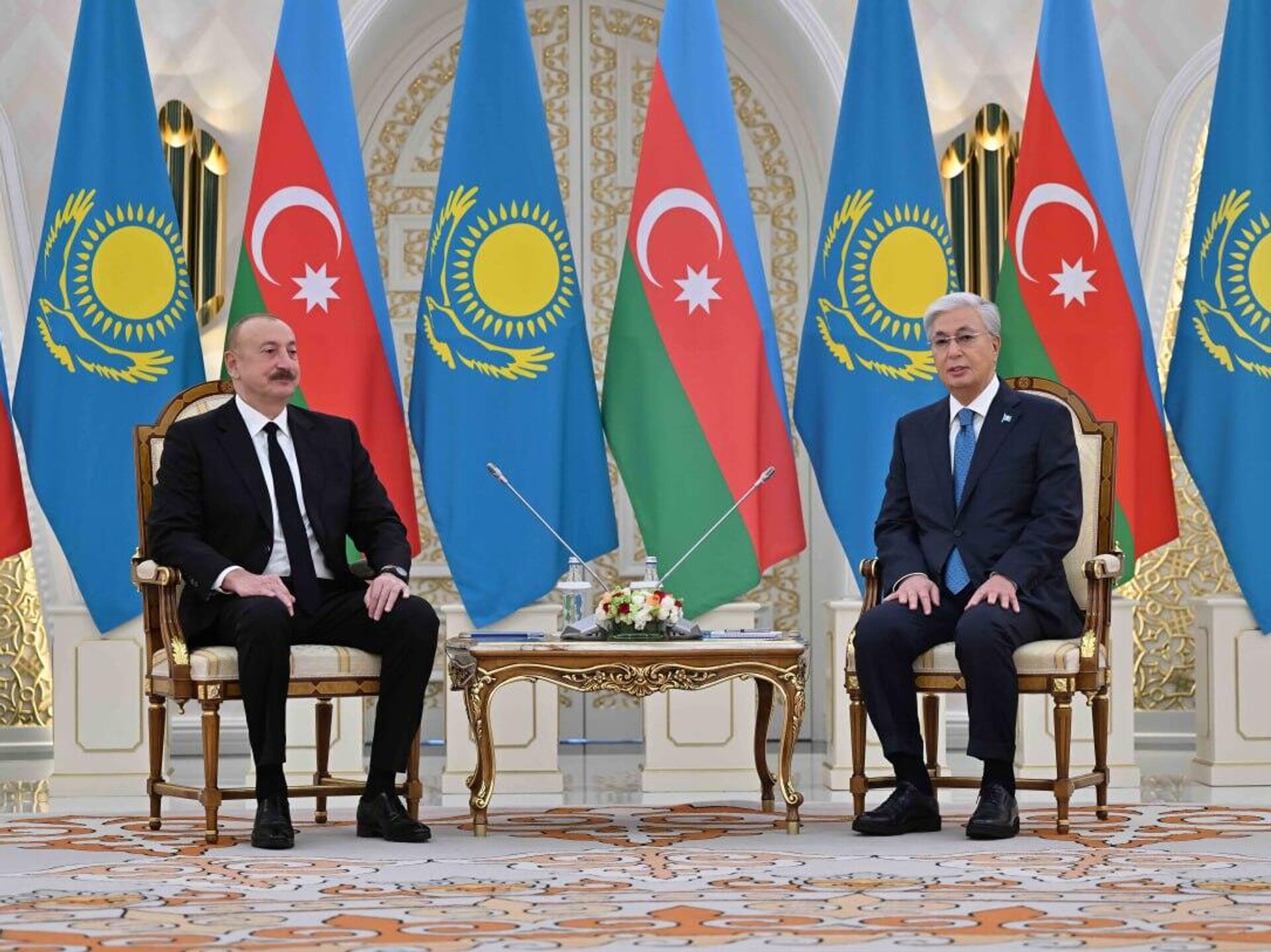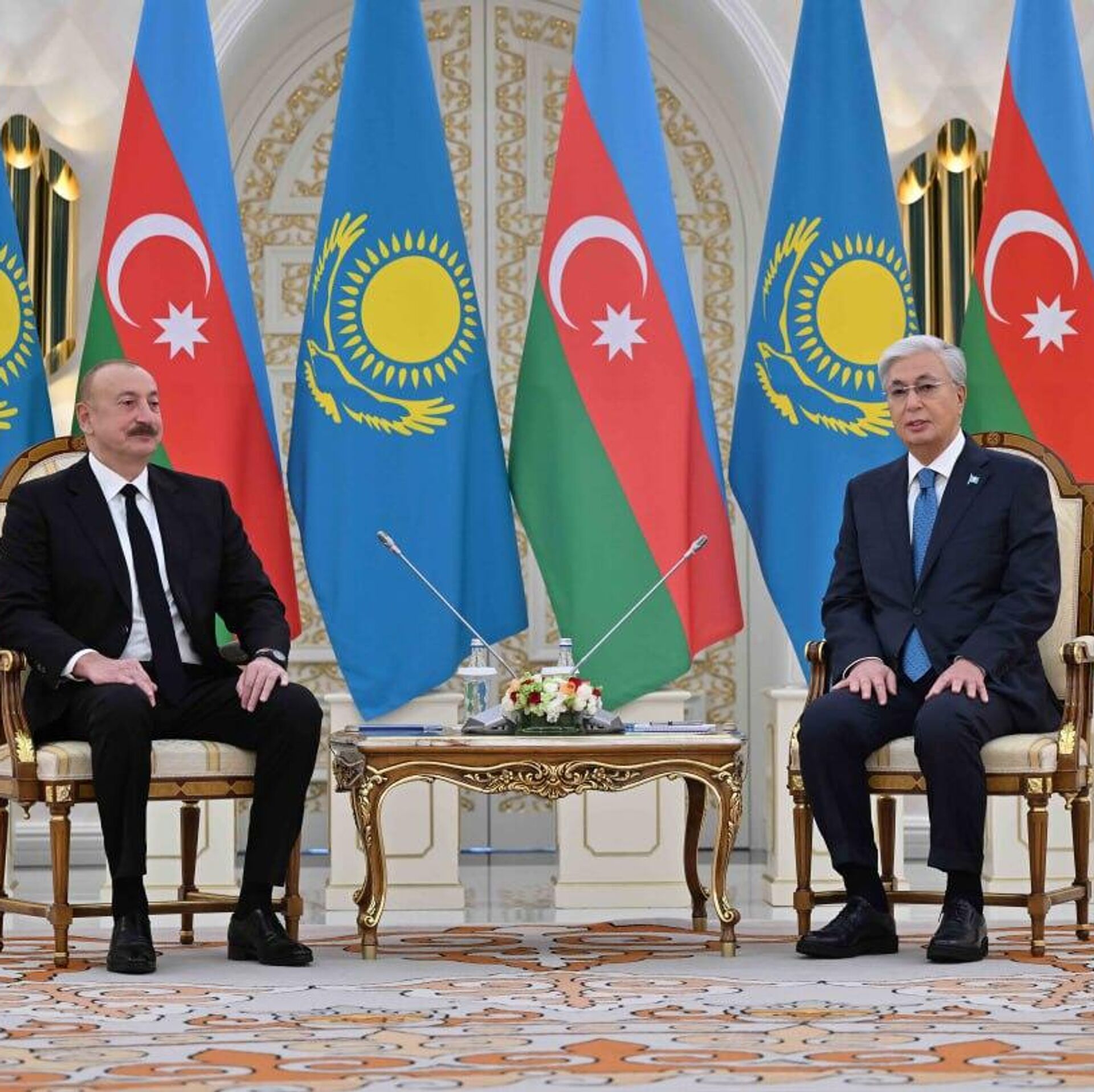 АСТАНА, 21 қазан – Sputnik. Қазақстан президенті Қасым-Жомарт Тоқаев пен Әзербайжан басшысы Ильхам Әлиев Ақордада шағын құрамда келіссөз өткізді, деп хабарлайды