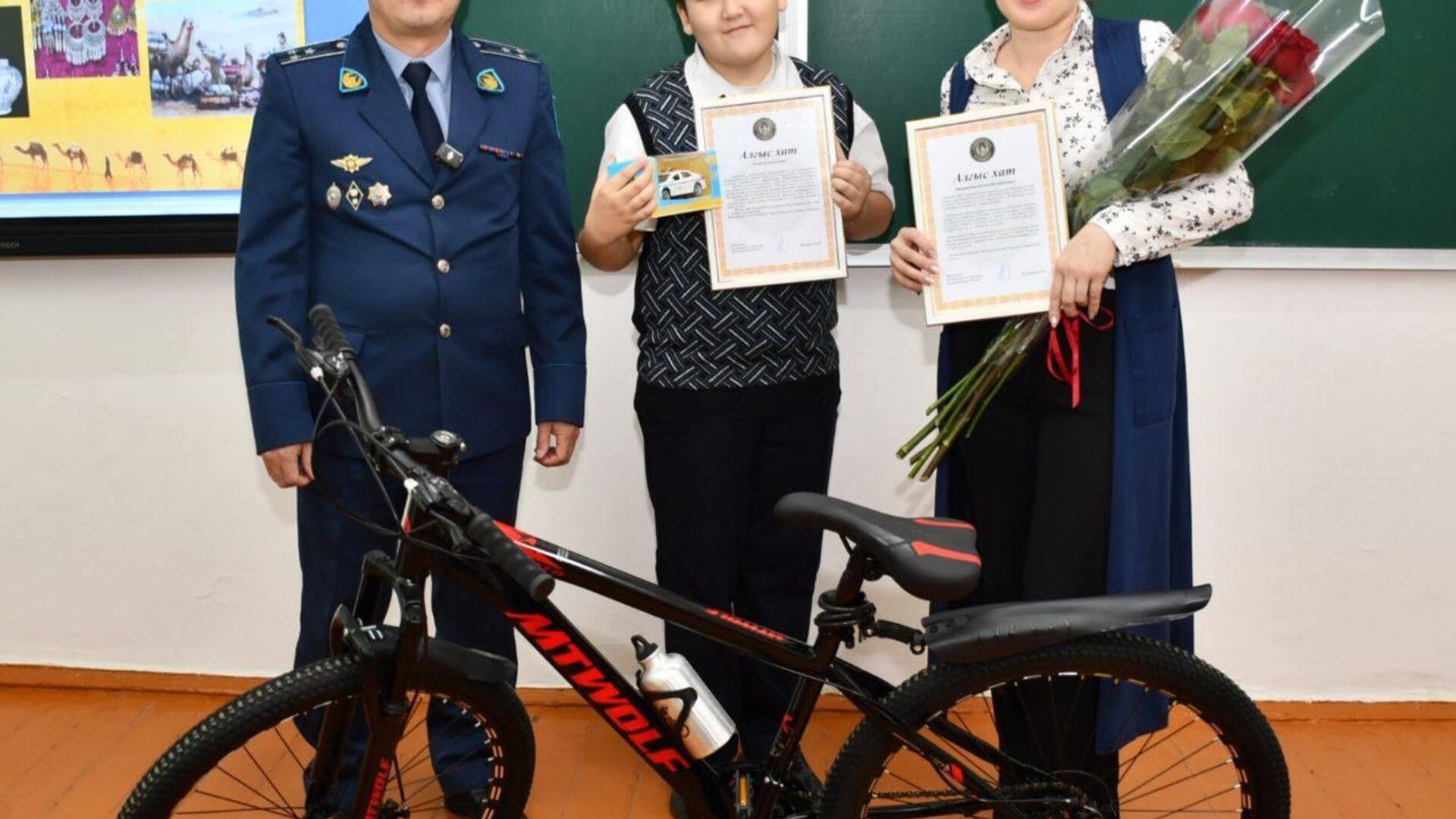 Полиция қырағылық танытқан Алан мен оның анасына алғыс айтып, ведомство атынан велосипед сыйға берілді.