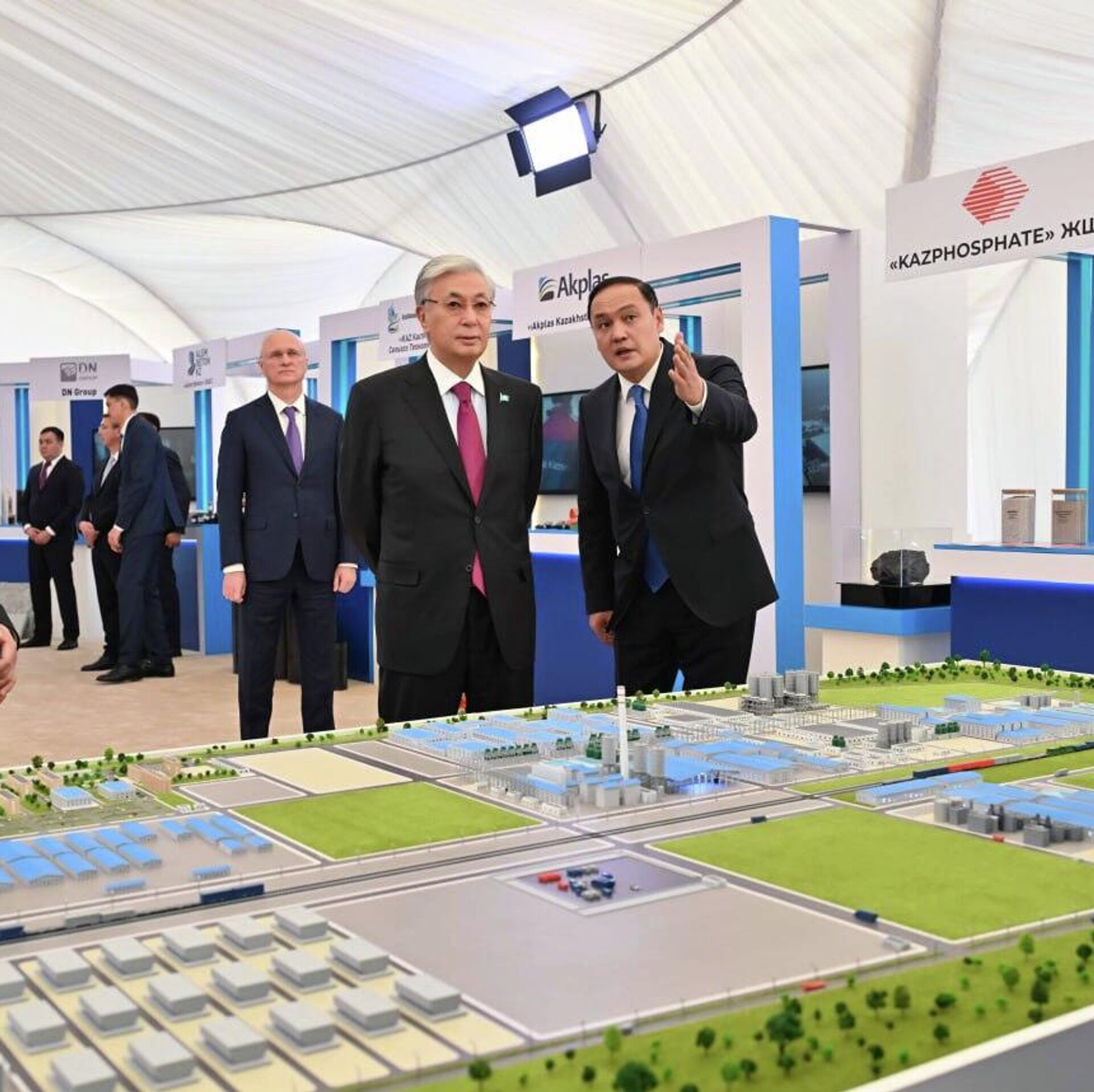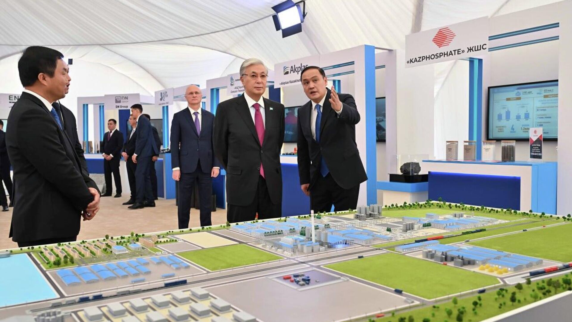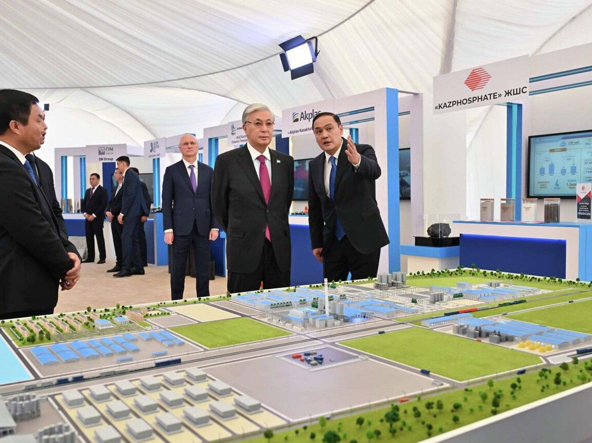 Сондай-ақ Жаңатас қаласындағы "ЕвроХим-Қаратау" ауқымды инвестициялық жобасының аралық қорытындысы ұсынылды. Қазір күкірт қышқылын өндіретін жаңа зауытты іске қосу алдындағы тексеру жұмыстары жүргізіліп жатыр. Алғашқы өнім ішкі нарыққа жөнелтілді.