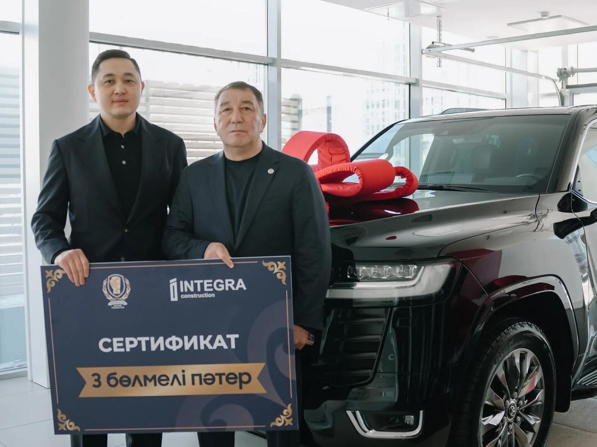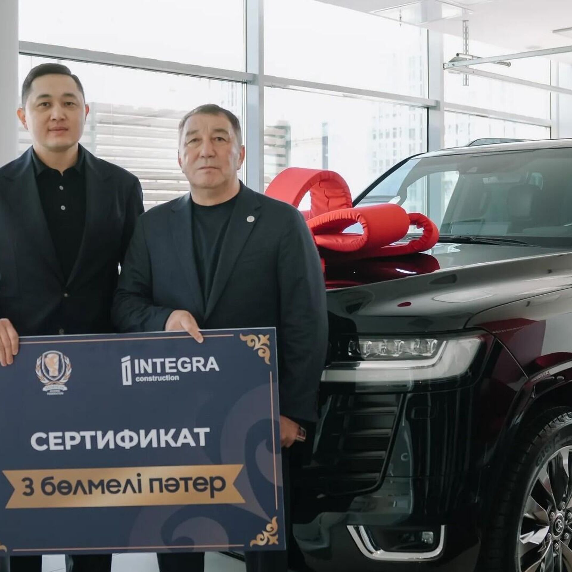 "Бүгін Астанада Қазақстан бокс федерациясының бірінші вице-президенті Дархан Қызайбаев Қайрат Сәтжановқа Toyota Land Cruiser 300 автокөлігін және Астана қаласынан 3 бөлмелі пәтер кілтін табыстады", - деп жазылған хабарламада.