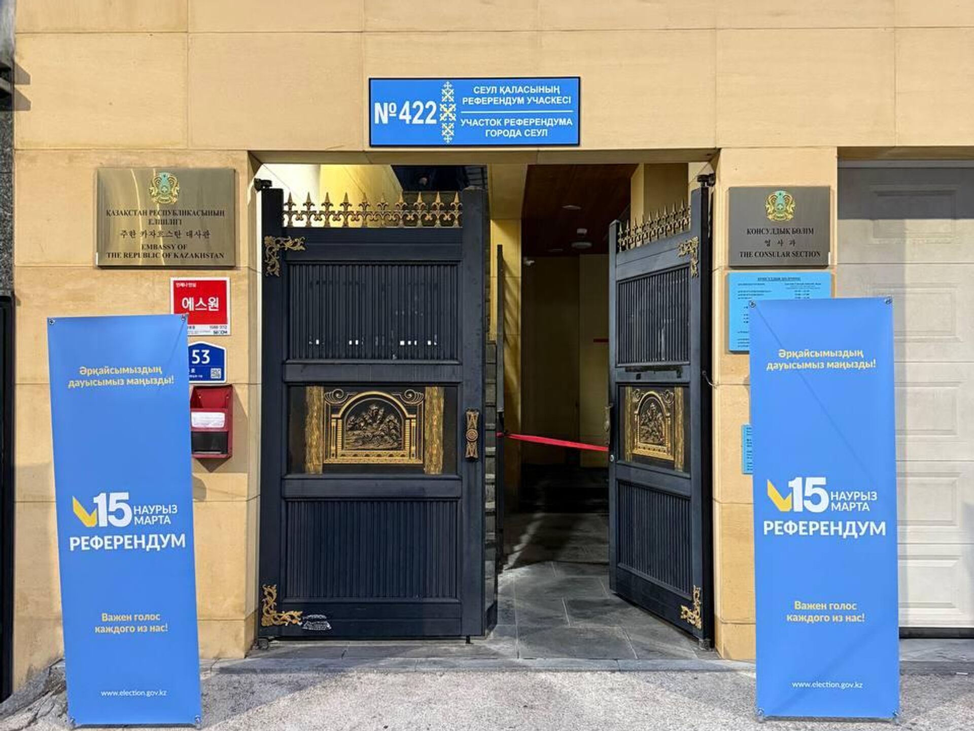 "Референдум учаскелерінде дауыс беру Астана уақытымен таңғы сағат 03:00-де Токио және Сеул қалаларында басталды. Ең соңғы ашылып, жабылатын референдум учаскесі АҚШ-тың Сан-Франциско қаласында орналасқан. Бұл учаске Астана уақытымен бүгін сағат 19:00-де ашылады және 16 наурызда сағат 08:00-де жабылады", - деді сыртқы істер министрінің орынбасары Арман Исетов Орталық референдум комиссиясындағы брифингте.